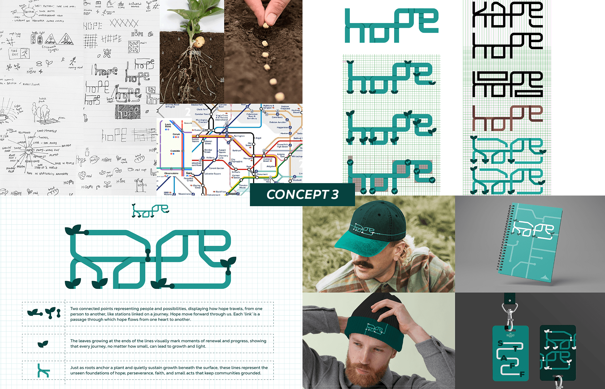 The final visual identity reframes hope as something participatory and collective, rather than individual or abstract.